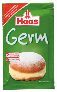 Mischen, Anruehren von Pulver mit Wasser oder Milch Zubereitung: Beuteinhalt gleichmäßig unter das Mehl mischen. Auflösen der Germ in Milch ist nicht erforderlich. Weitere Verarbeitung nach Rezept. |