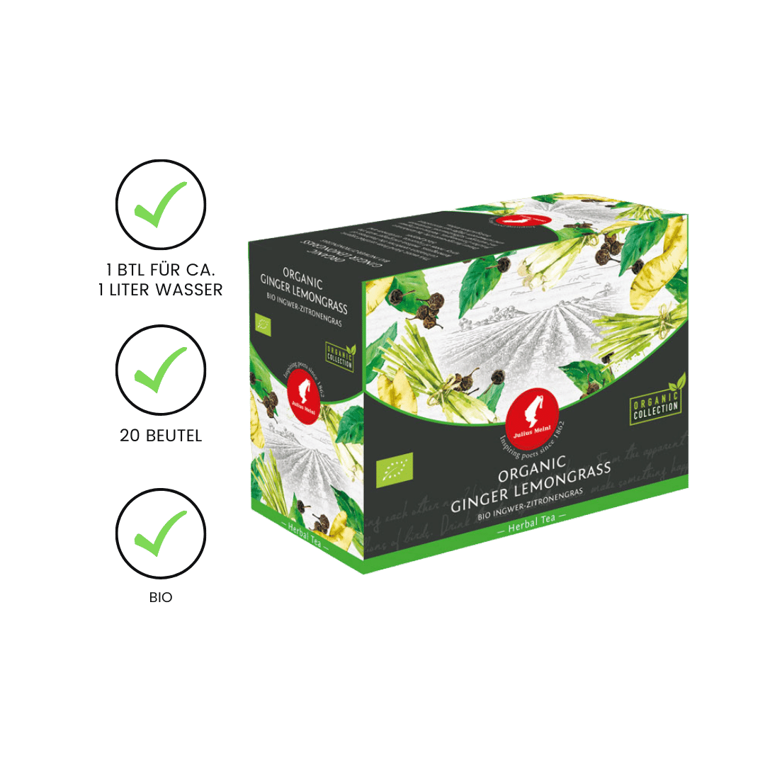 - Fein abgestimmte Bio-Kräutermischung mit Ingwer, Zitronengras, Melisse & weiteren Zutaten