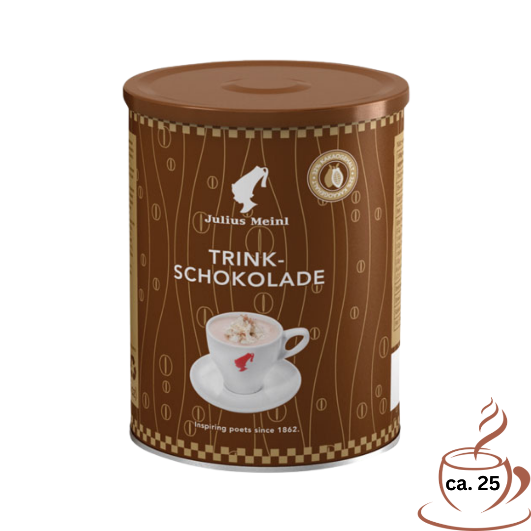 Die Julius Meinl Instant Trinkschokolade ist eine verführerische Erfahrung, die voller Genuss steckt! Mit mindestens 32% Kakao und einer samtig-schokoladigen Note kann man die Trinkschokolade warm oder kalt zubereiten. Für ein besonders köstliches Erlebnis empfiehlt es sich, 4-5 Teelöffel der Trinkschokolade in eine Tasse zu geben und mit heißer oder kalter Milch zu verrühren. Insgesamt erhält man pro Packung ca. 25 Tassen feinster Trinkschokolade. Eine Besodnerheit ist natürlich auch, dass man Julius Meinl Instant Trinkschokolade in der wiederverschließbaren Dose erhält. Inhaltsstoffe: Kakaopulver 32%, Zucker, Salz, Dextrose, Aroma. Kann Spuren von Milch oder Soya Lecithin enthalten.