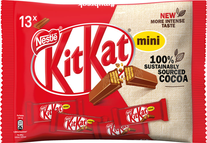 Zutaten: Zucker, WEIZENMEHL, MAGERMILCHPULVER, pflanzliche Fette (Palm, Shea), Kakaobutter*, Kakaomasse*, MOLKENERZEUGNIS, BUTTERREINFETT, fettarmer Kakao*, Emulgator Lecithine, Backtriebmittel Natriumcarbonate. *Rainforest Alliance zertifiziert. |