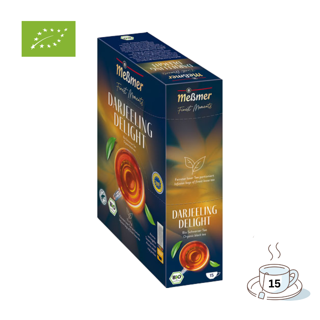 Meßmer Finest Moments Bio Darjeeling Delight, Schwarzer Tee, Teebeutel im Kuvert, 2. Entnahmefach/displaytauglich, 30g