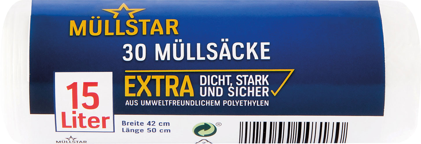müllstar Müllsäcke 15 Liter, weiss/transparent, extra dicht, stark und sicher, 30 Stück