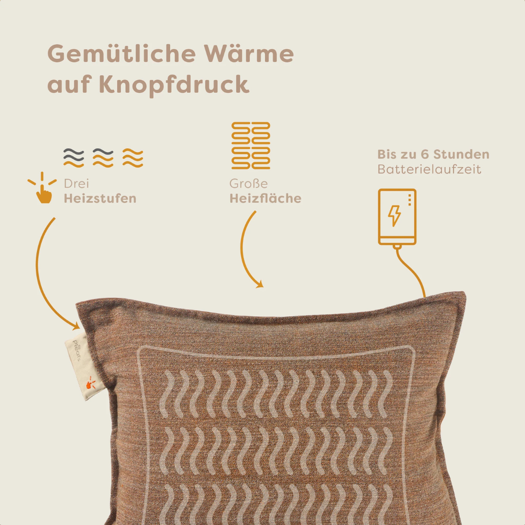 Bestellen Sie es jetzt und genießen Sie stundenlange Wärme und Komfort mit dem kabellosen Pleafs®-Heizkissen.
