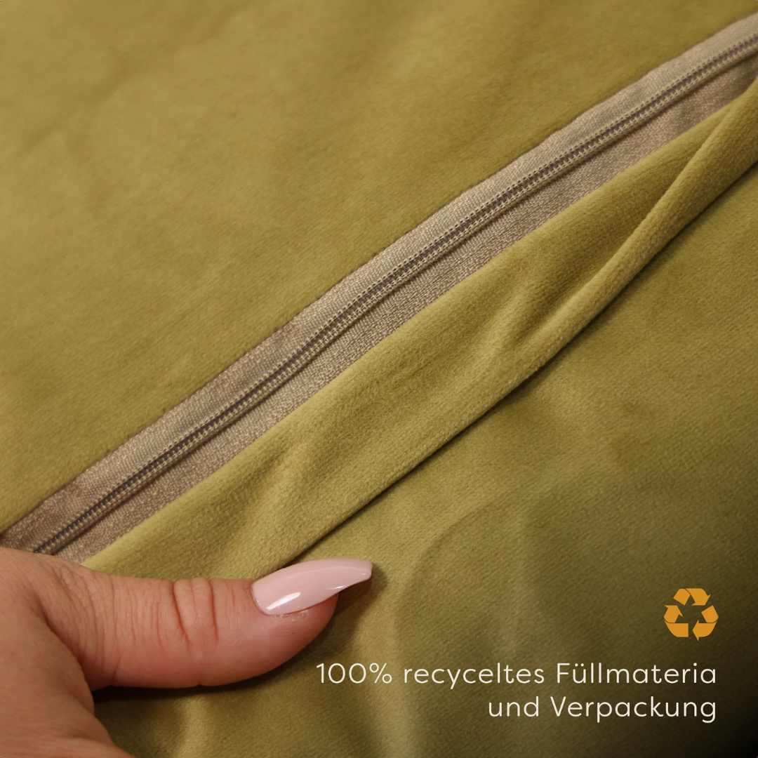 Material und Nachhaltigkeit Der weiche Plush-Stoff hat eine luxuriöse Optik und ist in sechs verschiedenen Farben erhältlich. Bei Pleafs® sind wir überzeugt, dass Nachhaltigkeit und Komfort Hand in Hand gehen können. Deshalb ist das Kissen mit 100 % recycelten Materialien gefüllt und verpackt. Die Maße des Kissens betragen 45x45 cm.