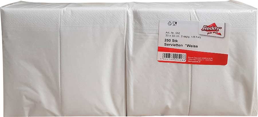 Servietten WEISS, 2-lagig, 33 x 33 cm, 1/8 Folding, 250 Stück