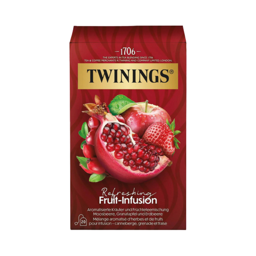 Twinings Refreshing Fruit Infusion Moosbeere, Granatapfel & Erdbeere, aromatisierte Kräuter und Früchteteemischung, Teebeutel im Kuvert, 40g